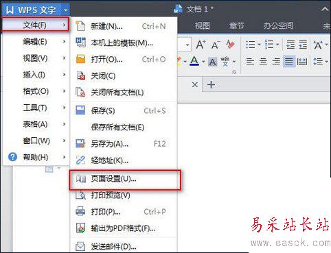 1、打開或新建文檔,按下圖打開【頁面設置】對話框,這是菜單欄打開方法。