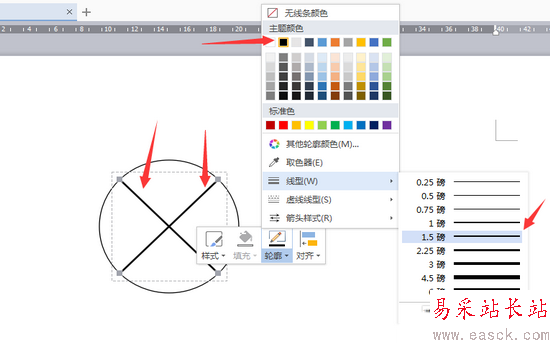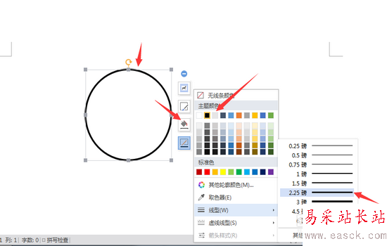 3、設置圓形的充填色為【無色】,外邊框為【黑色】如下圖所示。