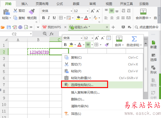 然后選擇旁邊的空白單元格,右擊,點擊-選擇性粘貼(如圖);