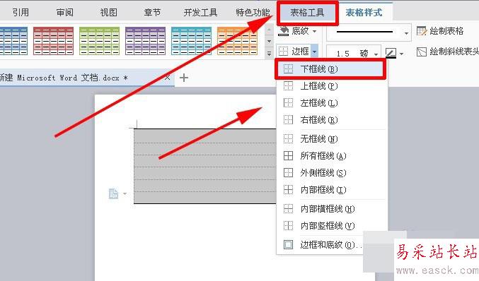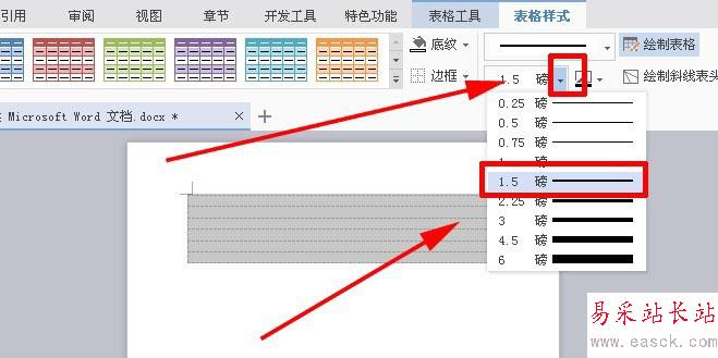 2、選中所有的表格,點擊工具欄中的“表格樣式”,再點擊“邊框”選擇“無邊框“,并把線的粗細設置為“1.5磅”。