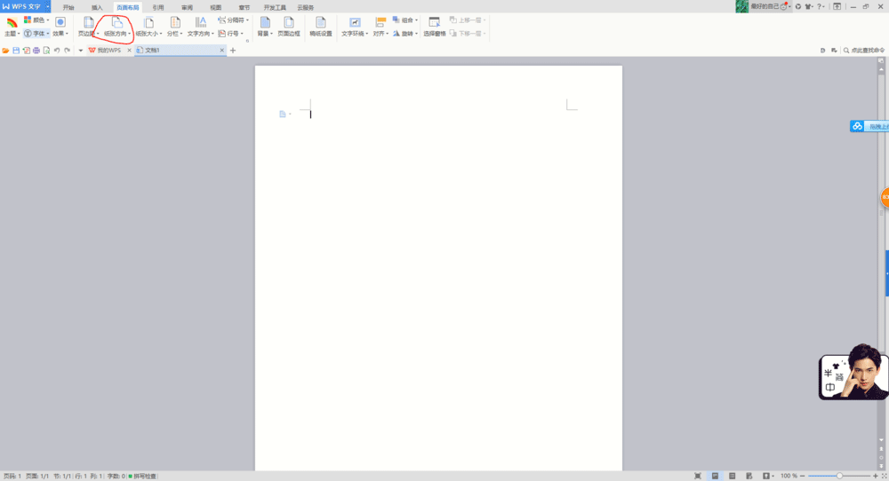 1、首先,我們打開WPS文字,新建一個(gè)文檔。我們首先要把文字方向設(shè)成橫向