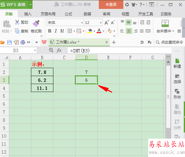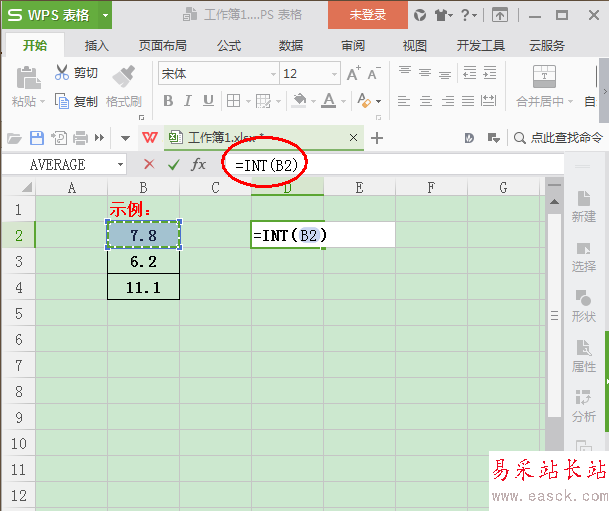 2、下面小編用示例來介紹INT函數的使用(如圖);