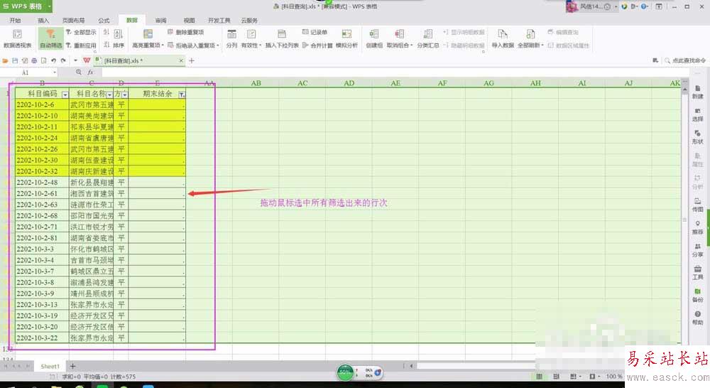 5、單擊【確定】按鈕后,所有包含【.】的行次都被篩選出來,如下圖所示: