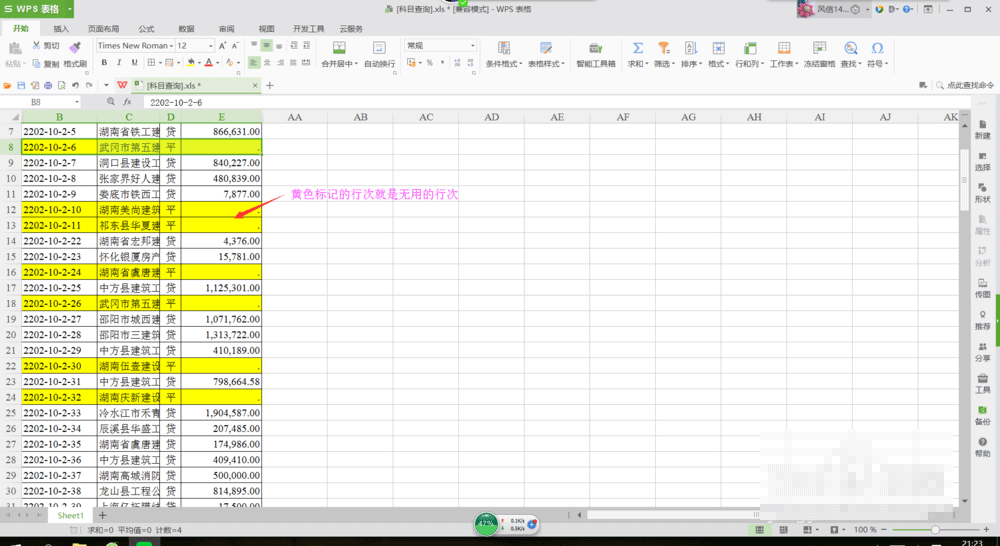 因為工作原因,在進行表格編輯處理時,由于表格存在不需要的行次,一行行的去刪除,太過麻煩,為了快速去除不用的行次,開始想辦法,還真讓自己想到辦法,跟我來一探究竟如何快速批量去除wps表格無用行?如圖中所示,黃色標記行就是不用的行次。