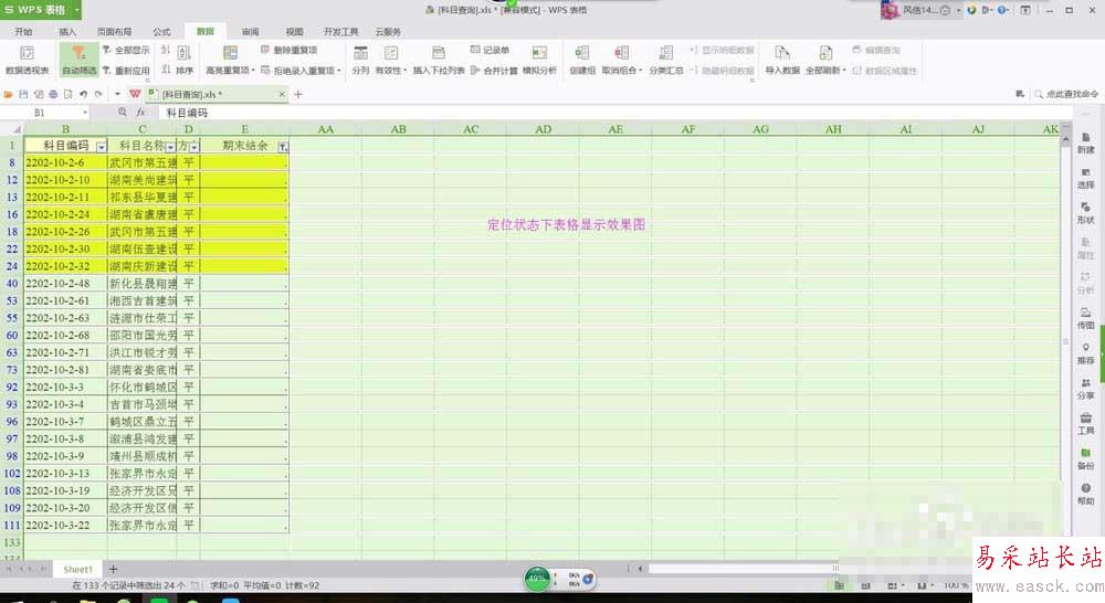 7、【定位】狀態下,表格顯示狀態如下圖所示: