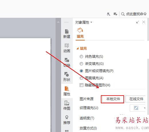 4、在右側(cè)屬性欄中點擊“圖片或紋理填充”選項。