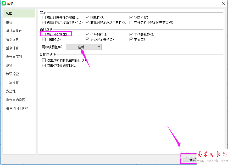 5、我們找到自動分頁符,把那個勾取消掉,如圖。