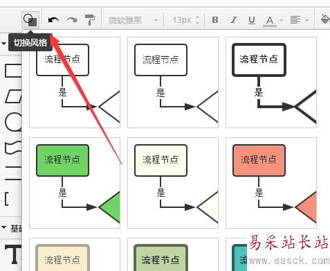 6、如下圖所示的節(jié)點中,我們可以使用鼠標衍生出不同的指示線段,上面菜單欄中還可以設(shè)置不同類型的線型。