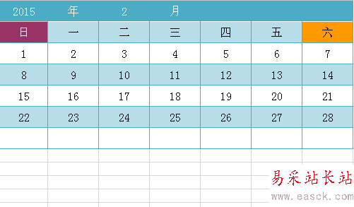 6、好了,日歷就做好了,接下來就跟據自己的喜好,設置表格樣式。可用條件格式標記出星期六和星期日。