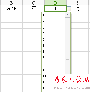 2、用數據有效性做出年、月的下拉菜單。