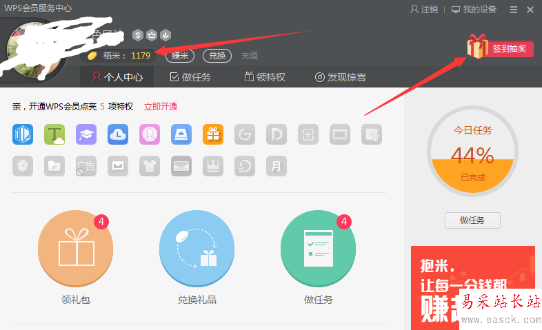 3、選擇我的賬號,我每次登陸之后都會去簽到,因為簽到獲得的稻米可以去更換模板。