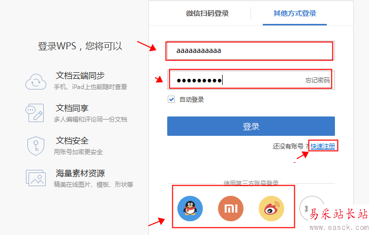 4、然后我們輸入賬號、密碼,點擊登錄即可。(這里建議可以使用第三方快捷登錄)