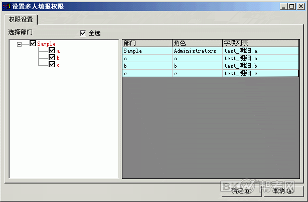 假設有一家公司,有三個部門a/b/c, 對應部門a/b/c,有三個角色a/b/c,對應部門和角色有三個人員a/b/c。對下面的報表: