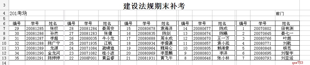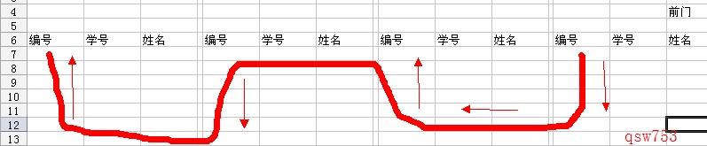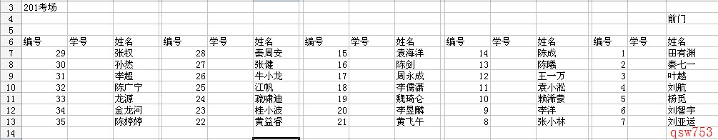 2.好了,我們進(jìn)入“座位安排” ,把基本的信息先輸入進(jìn)去。比如:前門、編號(hào)、學(xué)號(hào)、姓名等。(考室一般是7*5模式,而且是S形的)