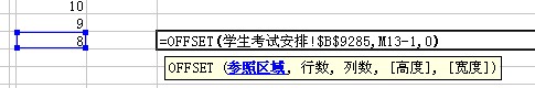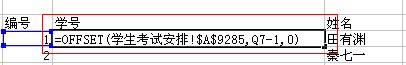 7.好了,我們來添加姓名。在進(jìn)門的第一個(gè)位置上,也就是S7,輸入“=OFFSET(學(xué)生考試安排!$B$9285,Q7-1,0)”(意思是調(diào)用“學(xué)生考試安排”里的內(nèi)容。其中“$B$9285”表示在“學(xué)生考試安排”中,的具體位置,這個(gè)位置是B9285,你在邊輸?shù)臅r(shí)候,軟件會(huì)有提示參考)