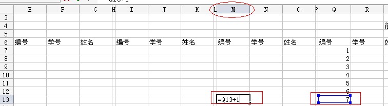 5.由于是S形的,換列的時(shí)候要注意。比如,換列了,就要在第二列的第一個(gè)位置上輸入“Q13+1”,然后在第二列的第二個(gè)位置上又要輸入 “M13+1”(一定要注意這點(diǎn)),然后用鼠標(biāo)拖黑色小三角形的時(shí)候,就要選這個(gè)了(第二列第二個(gè)位置),不要選“Q13+1”這個(gè)。
