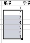 8.輸完每列的第一個(gè)后,就用鼠標(biāo)按住黑色的小三角形拖下去就是了。輸入學(xué)號(hào),同樣如此。