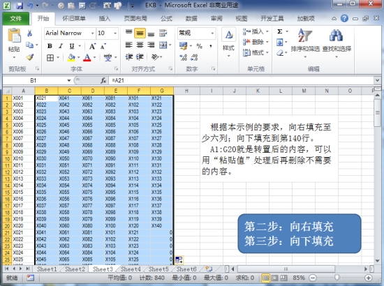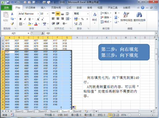 反之,如果是多列轉一列,也是兩次填充就可以完成: