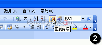 2. 單擊“常用”工具欄上的“圖表向導”按鈕(圖 2)。或者選擇菜單“插入→圖表”命令。打開“圖表向導”對話框。