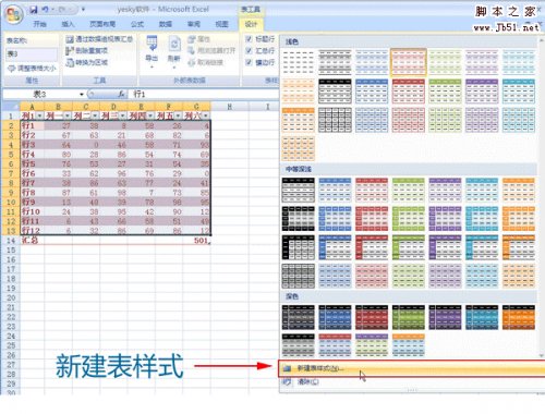 2、在彈出的樣式列表中,選擇“新建表樣式”。