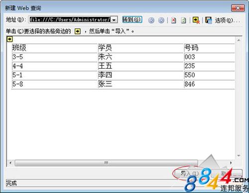 3、找到剛才保存的“Html”單擊打開,再單擊“導入”,在彈出的“導入數據”窗口中可以選擇“現有工作表”、“新建工作表”都行,然后單擊確定即可。