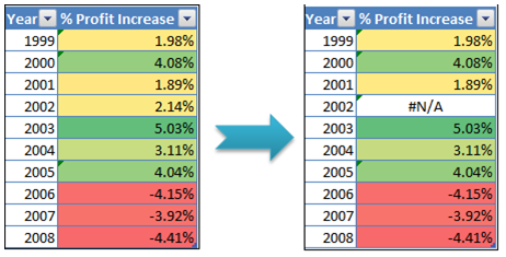 在Excel 2010中,條件格式悄悄地忽略了這些錯誤,繼續應用條件格式到該區域中剩下的單元格。