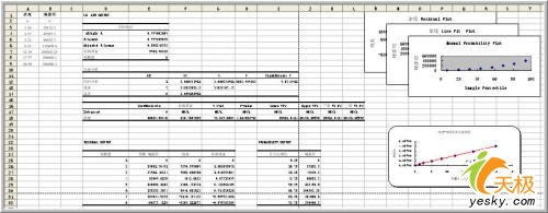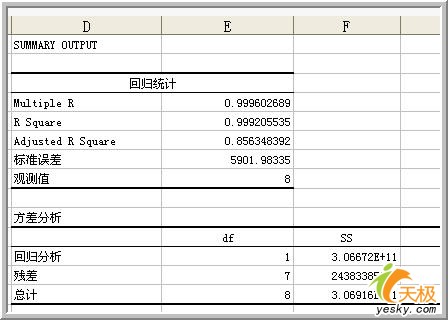 更多的信息在生成的表格中,詳細的參數項目完全可以滿足回歸分析的各項要求。下圖提供的是擬合直線的得回歸分析中方差、標準差等各項信息。