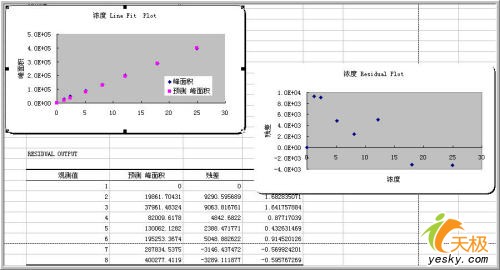 “回歸”工具為我們提供了三張圖,分別是殘差圖、線性擬合圖和正態概率圖。重點來看殘差圖和線性擬合圖。