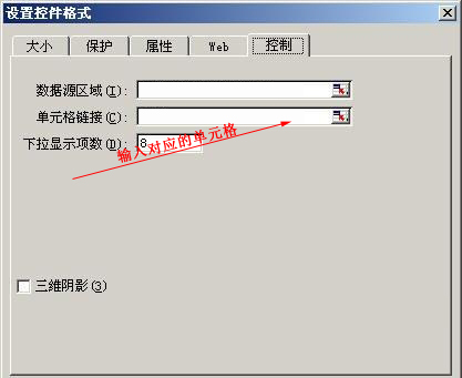 最后在“設(shè)置控件格式”對(duì)話框中選擇“控制”選項(xiàng)卡,至設(shè)置“數(shù)據(jù)源區(qū)域”為“選中單元格的數(shù)據(jù)”,設(shè)置“單元格鏈接”為與單元格對(duì)于的參數(shù)或數(shù)據(jù)即可,最后單擊確定即可,當(dāng)然這種方法筆者不推薦,是在有點(diǎn)麻煩了。如圖所示: