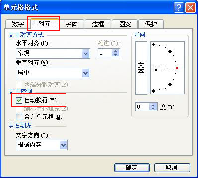 Excel2003操作方法:鼠標右擊,選擇【設置單元格格式】,然后選擇【對齊】選擇項卡,把【文本控制】下面的【自動換行】前面的勾選中,如圖所示: