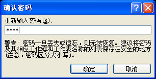 步驟三、在打開的“確認(rèn)密碼”對話框中再次輸入打開權(quán)限的密碼,單擊“確定”按鈕,再在打開的“確認(rèn)密碼”對話框甲輸入修改權(quán)限的密碼,然后單擊“確定”按鈕,如圖所示。返回“另存為”對話框,單擊“保存”按鈕即完成操作。