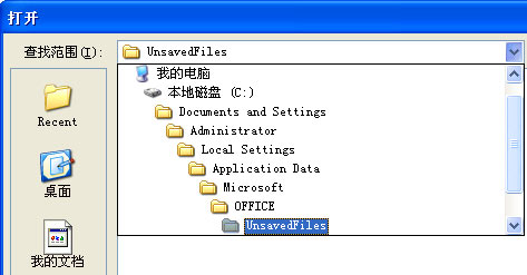 打開“打開”對話框,在中間的列衰框中列出了所有未保存的工作簿,選擇需要恢復(fù)的工作簿,單擊“打開”按鈕打開該工作簿,如圖所示:
