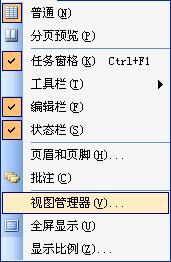 另:在Excel2003中自定義視圖在Excel 2003中,若要自定義視圖,可在“視圖”菜單中選擇“視圖管理器”命令打開“視圖管理器”對話框進行設置,如圖所示: