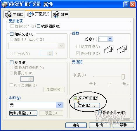 小提示:請一定安裝打印機隨機提供的驅動光盤,使用Windows提供的默認驅動是不可能有這些特殊打印功能的。在不需要雙面打印時還得從在里更改才行。