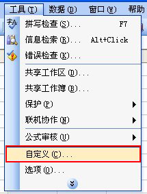 2、在我們打開表格之后,然后我們點擊菜單欄中的“工具”,然后選擇該選項中的“自定義”,如圖所示: