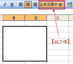 4、在選擇“總是只用文字”之后,圖標就會變成“合并并居中單元格(M)”的樣子,然后我們關閉剛才的自定義,選擇需要合并的單元,按下Excel的合并單元格快捷鍵【ALT+M】即可將單元格合并,如圖所示: