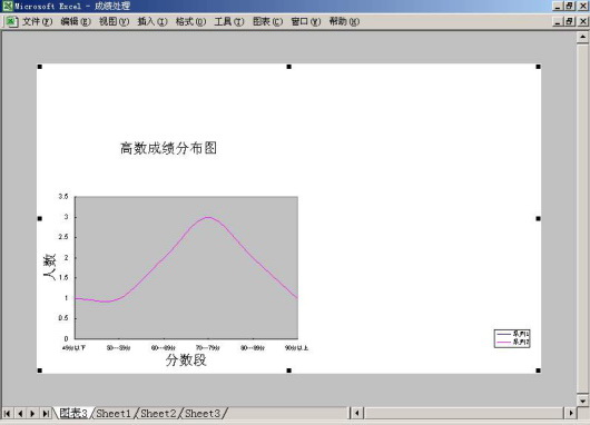 (4)單擊“下一步”按鈕彈出“圖表位置”對話框,選定對話框中的“作為新工作表插入”單選項后,單擊“完成”按鈕退出,得到如圖2所示成績曲線(可以對曲線圖進行編輯)。