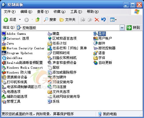 要改變工具提示的默認格式,需要打開“顯示屬性”對話框。可以雙擊“控制面板”中的“顯示”將其打開,如圖4所示。也可以在桌面上單擊右鍵,然后從彈出菜單中選擇“屬性”將其打開。