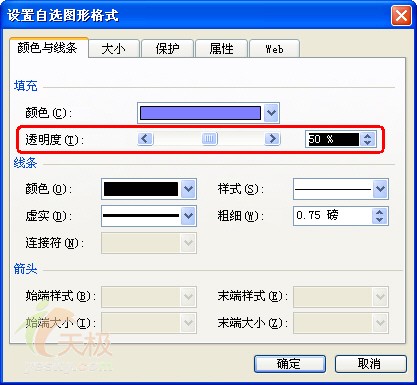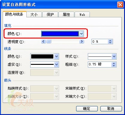 5.為了得到更好的效果,從“線條”區域中的“顏色”右側下拉列表中選擇“無線條顏色”,如圖7所示。單擊“確定”按鈕關閉“設置自選圖形格式”對話框。