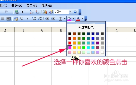 這時會出現一個下拉菜單,里面有各種顏色的小方塊,你可以選擇一種你喜歡的顏色點擊。