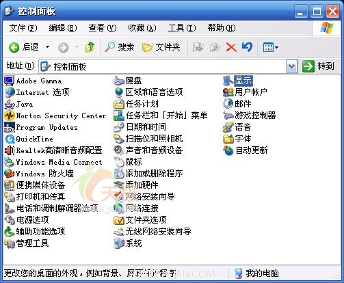 要改變工具提示的默認格式,需要打開“顯示屬性”對話框。可以雙擊“控制面板”中的“顯示”將其打開,如圖4所示。也可以在桌面上單擊右鍵,然后從彈出菜單中選擇“屬性”將其打開。