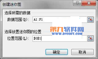3、利用“位置范圍”右側的折疊按鈕,選中顯示迷你圖表的單元格(如G1),單擊“確定”按鈕,迷你圖就顯示在上述一個單元格中了。