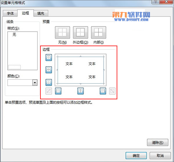 4、切換到邊框標簽,設置邊框的效果顏色,外邊框藍色,內部白色。