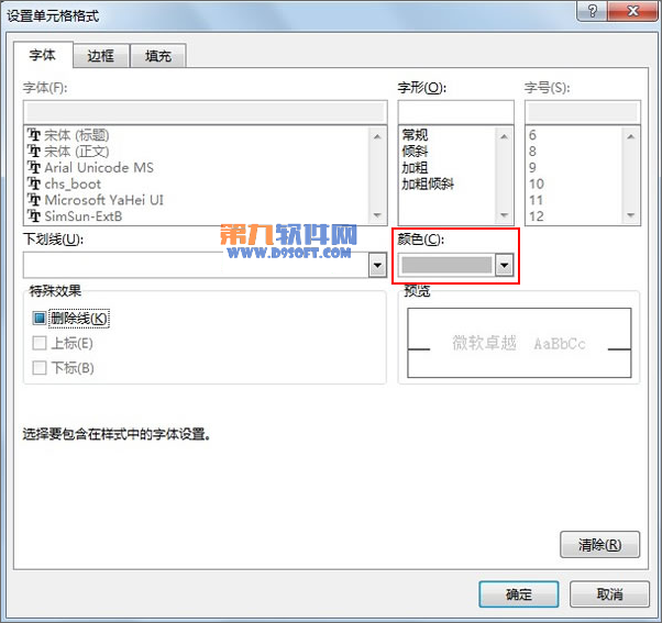 3、彈出設置單元格格式對話框,選擇顏色、字體、字型、特殊效果等等。