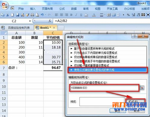 3)在【編輯規(guī)則說明】處輸入:=ISERROR(C2)