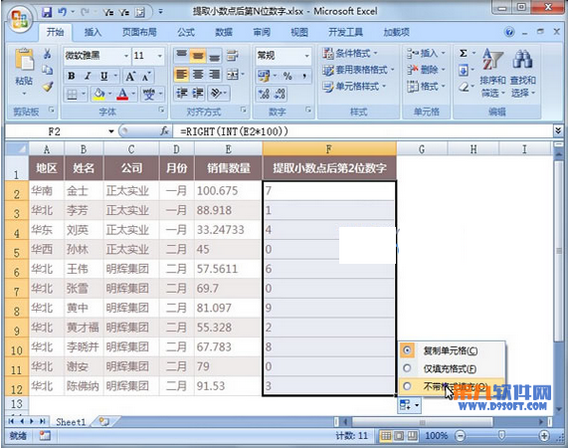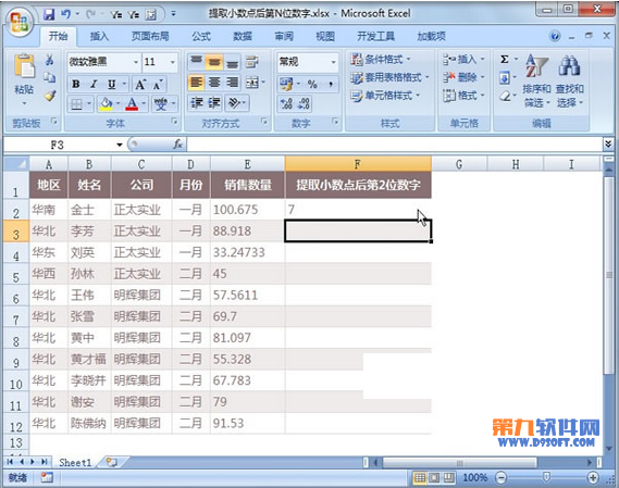 ?、賳?dòng)Excel2007,打開需要處理的數(shù)據(jù)清單,在F2單元格輸入下面的公式。