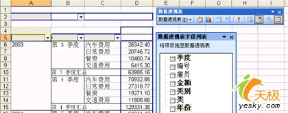 但是,在需要按季度查看費用類別總計時會發生什么情況呢?而且如果您每次只想查看某一類或某一年份又該怎么辦呢?在 Excel 工作表中能實現這些嗎?當然可以。有沒有更容易的方法?肯定有。