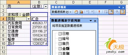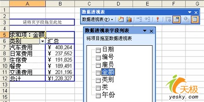 將包含要匯總數據的字段,例如,“金額”字段,從“數據透視表字段列表” 拖動到數據透視表的“請將數據項拖至此處”區域。