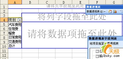 將“類別”字段從“數據透視表字段列表”拖動到數據透視表的“將行字段拖至此處”區域。
