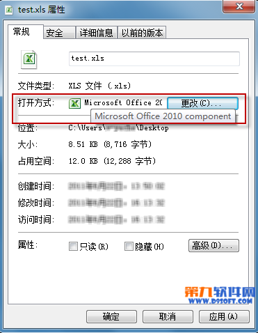 下面我們以 Excel 2010 為例,看一下如何設(shè)置文件的默認(rèn)打開程序。右擊某個(gè) Excel 文件,選擇“屬性”。